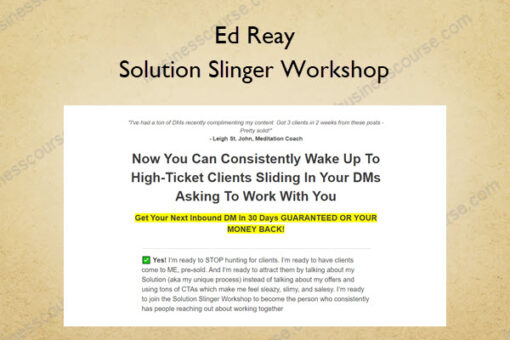 SELL WITHOUT SELLING: What makes the Solution Slinger Workshop unique is the focus is on getting people sold on my Solution (aka the unique process or way I get people results)… instead of my offer. This is the fastest and easiest way to get people pre-sold on working with me in an educational, value-based way so I’m positioned as the authority.